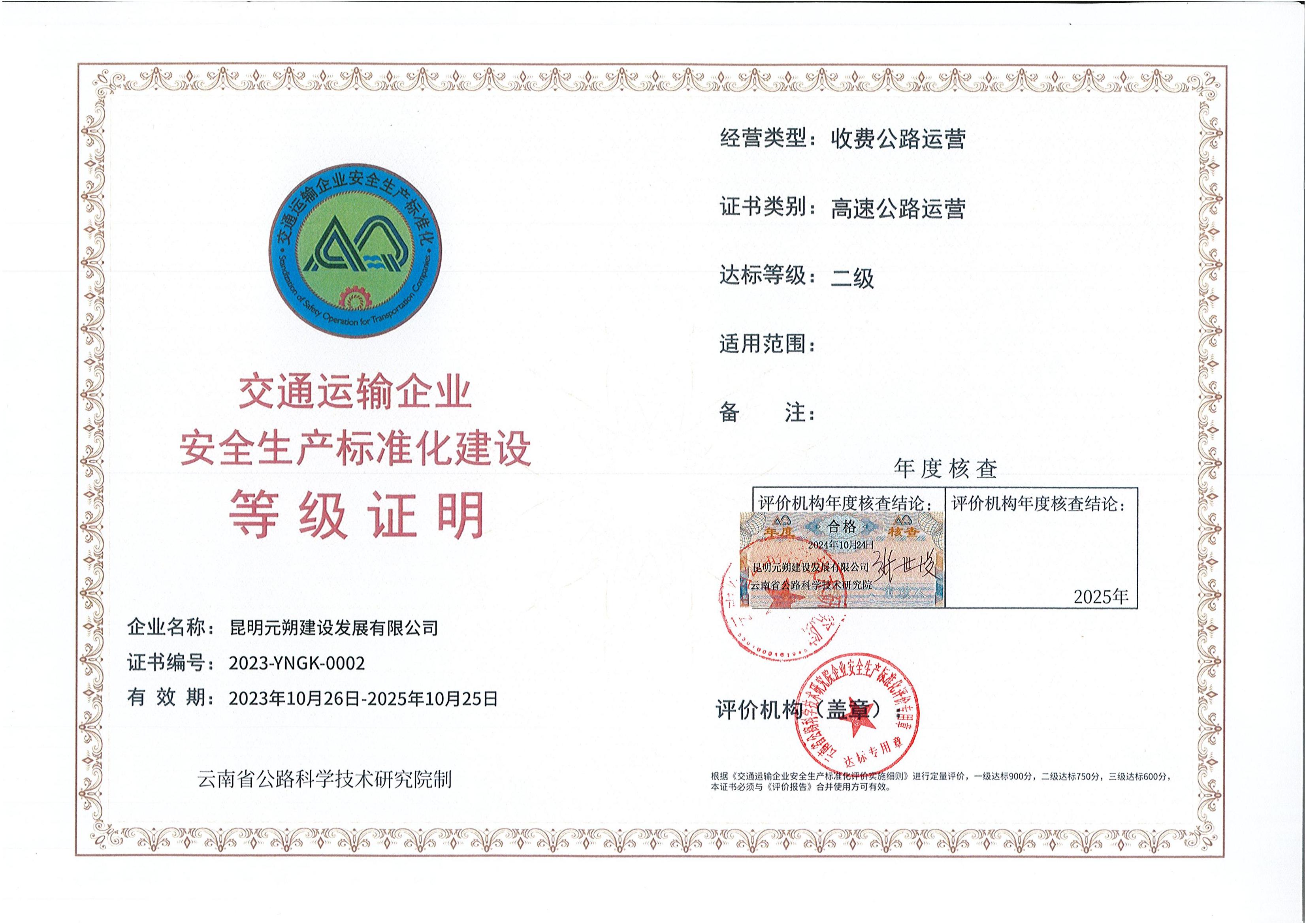 昆明高速公路公司下屬元朔公司順利通過高速公路運(yùn)營(yíng)安全生產(chǎn)標(biāo)準(zhǔn)化二級(jí)復(fù)審評(píng)價(jià)